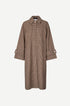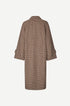 Long wool coat with a relaxed fit, round neck, and collar. Raglan sleeves, center front button closure, and cuff tabs. Vertical welt pockets at the front and inside pocket. Lined. 40g Meida insulation. Recycled wool and polyamide blend fabric with a houndstooth check pattern. Main fabric: Manteco MWool®, woven in Italy from a recycled wool blend.