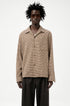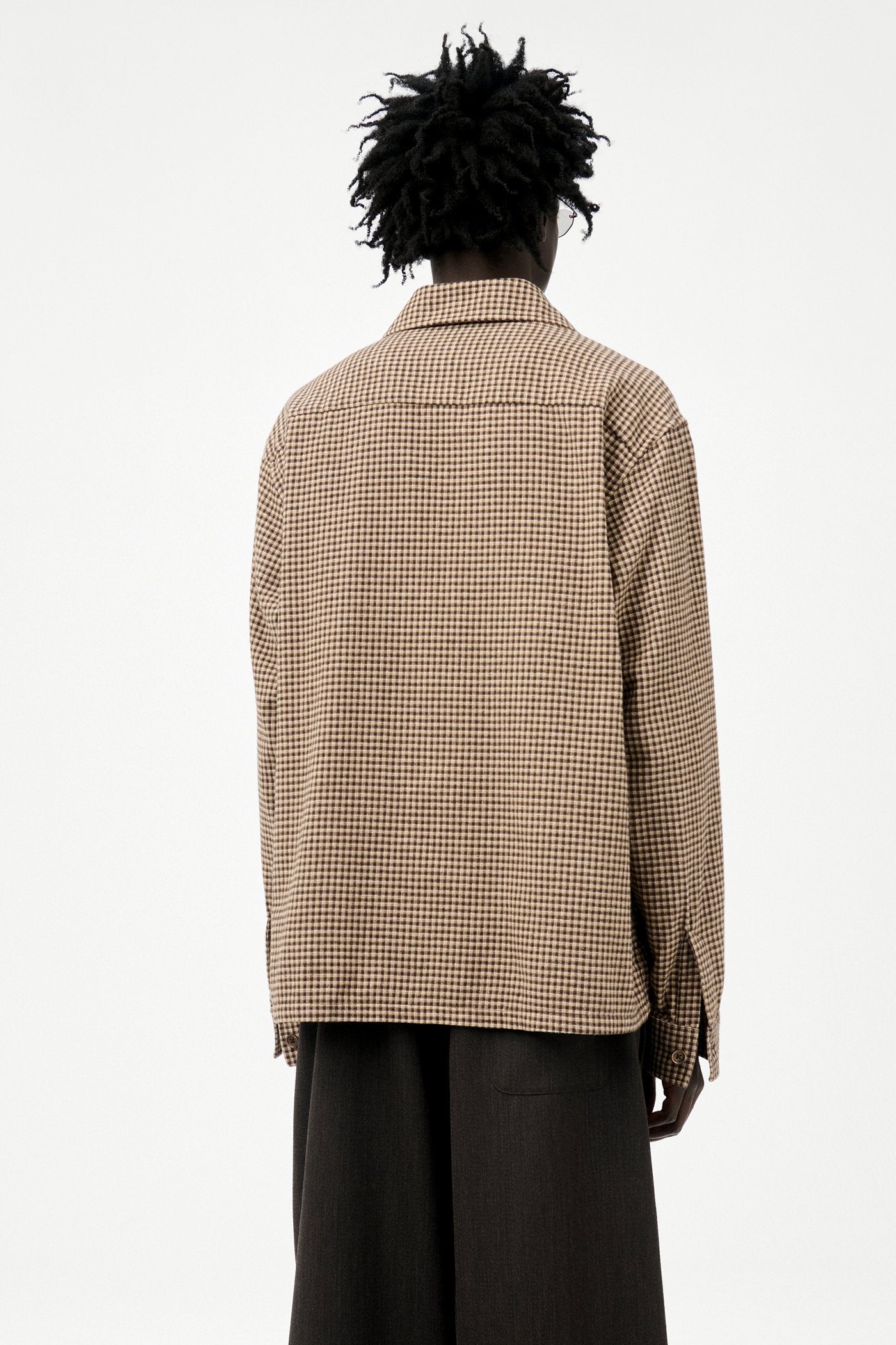 The Heusen men's shirt, made from soft Italian flannel fabric made of cotton and polyester, has a boxy fit and features mother-of-pearl buttons, a single breast pocket, and a straight hem.