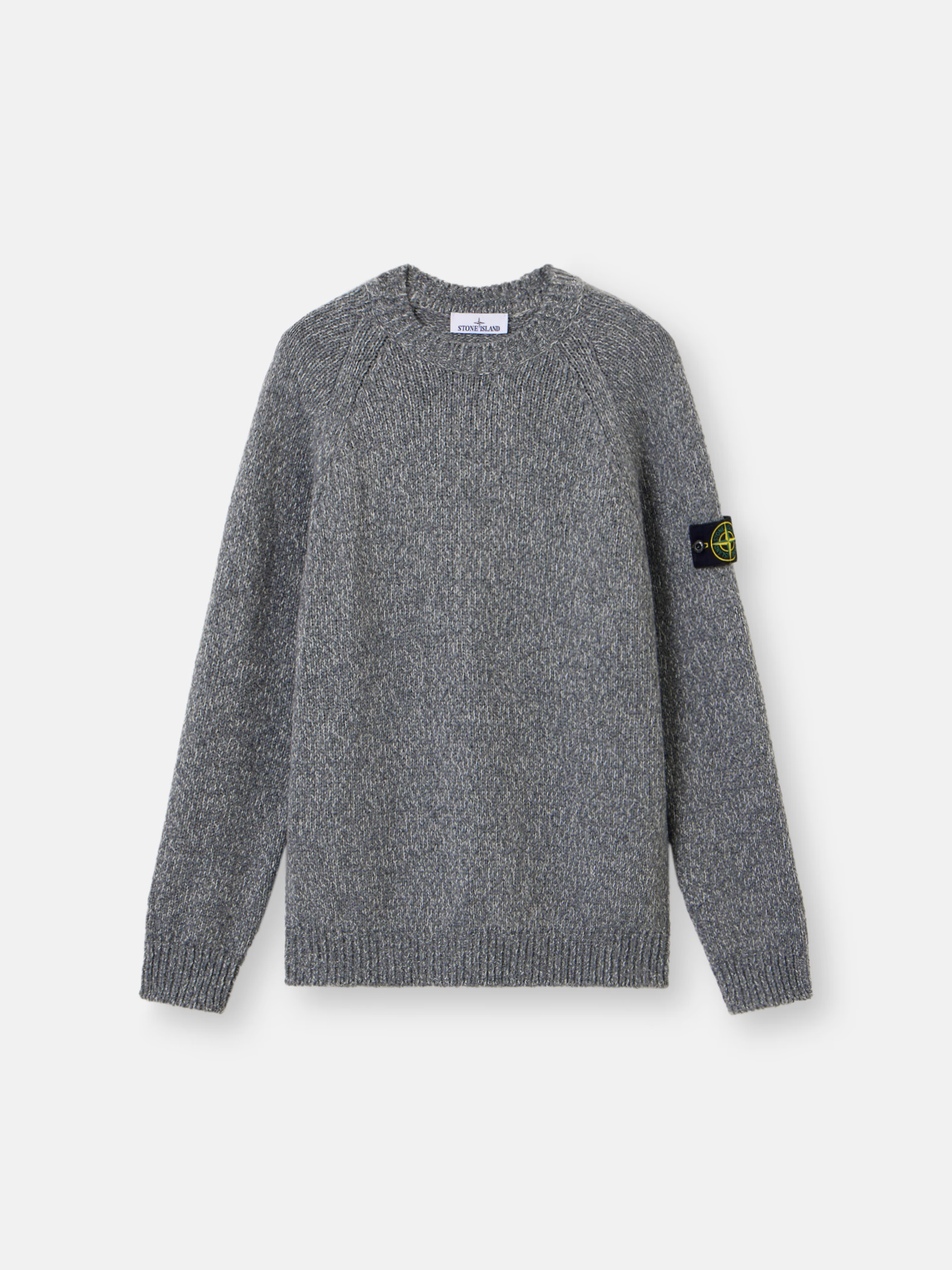 Strickpullover mit Rundhalsausschnitt aus Mouliné-Garn aus Wolle und Nylon. Glatt rechts gestrickt.