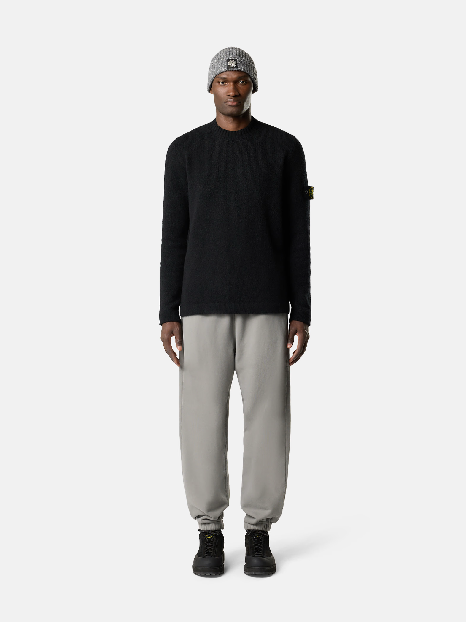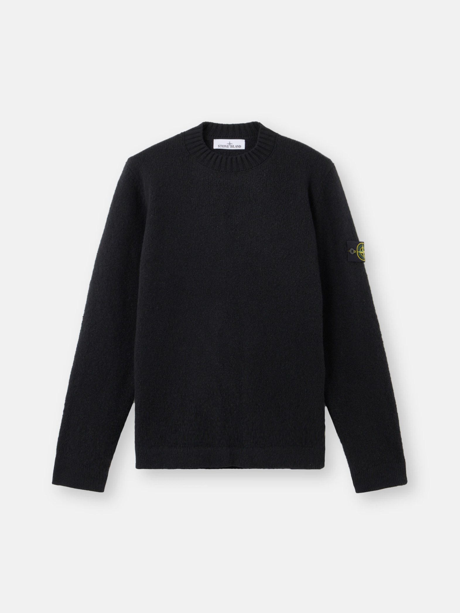 Gestrickter Pullover mit Rundhalsausschnitt aus einer Woll/-Nylonmischung mit angerauter Struktur. Glatt rechts gestrickt.