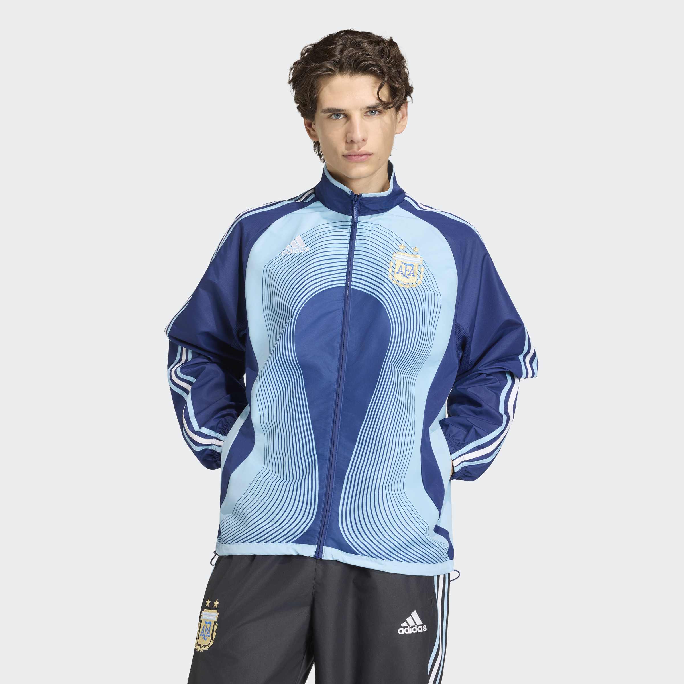 Erlebe die glorreichen Zeiten mit der Argentina Auswärts-Trainingsjacke 2006 – eine Hommage an die Fußballgeschichte. Diese Trainingsoberteil bringt das kultige Design von 2006 zurück und ist eine fantastische Wahl für Fans und Modebegeisterte. Die locker geschnittene Trainingsjacke bietet Komfort und Bewegungsfreiheit und eignet sich sowohl für die Freizeit als auch für die Tribüne. Dank Reißverschluss lässt sie sich leicht an- und ausziehen, während der Stehkragen ihr einen Hauch an kultigem Flair verleiht. Diese Trainingsjacke mit dem argentinischen Wappen auf der Brust ist ein Must-have für alle Fußballbegeisterten. Zeige stolz deine Liebe zum Fußball mit adidas, wo Tradition auf modernen Stil trifft.