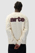 Made from heavyweight cotton, the cable knitted sweater comes in a cream colorway and has a regular fit. The sweater features a seasonal Arte logo that captures the theme of the collection screen-printed in burgundy across the back.