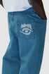 The trousers are an everyday pair of pants that feature an embroidered artwork in white that channels the theme of the collection on the right back pocket. The denim pants come in a classic 5-pocket style and have a relaxed, slightly tapered fit.