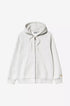 Die normal geschnittene Hooded Chase Jacket besteht aus einem schweren Polyester-Baumwolljersey, der für eine Fleece-artige Innenseite gebürstet wurde. Sie hat Raglanärmel, Flatlocknähte und ein gesticktes ‘C’ Logo auf dem linken Ärmel.