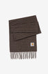 Der Lowis Scarf besteht aus einem gebürsteten Polyester- und Wollmix mit einem Jacquard-Karomuster. An den Enden ist er mit Fransen ausgestattet. Ein gewebtes Square Label rundet das Design ab.