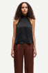 Neckholder-Top aus Satin mit schmaler Passform. Knopfverschluss mit elastischen Schlaufen und Knöpfen auf der Rückseite. Hauptmaterial aus elastischem Mischgewebe mit recyceltem Polyester.