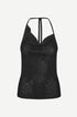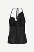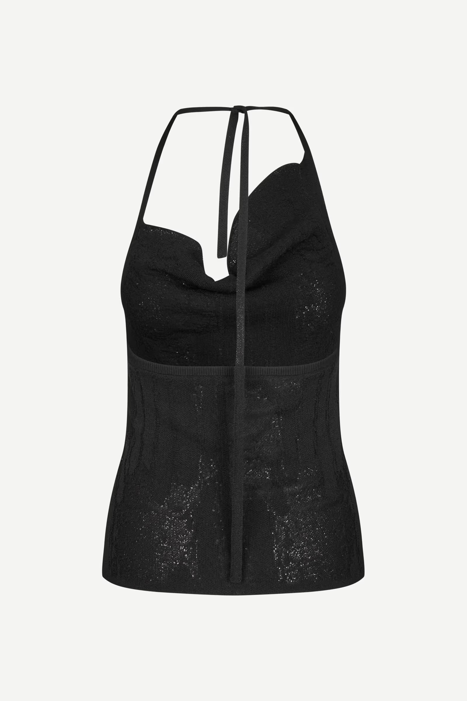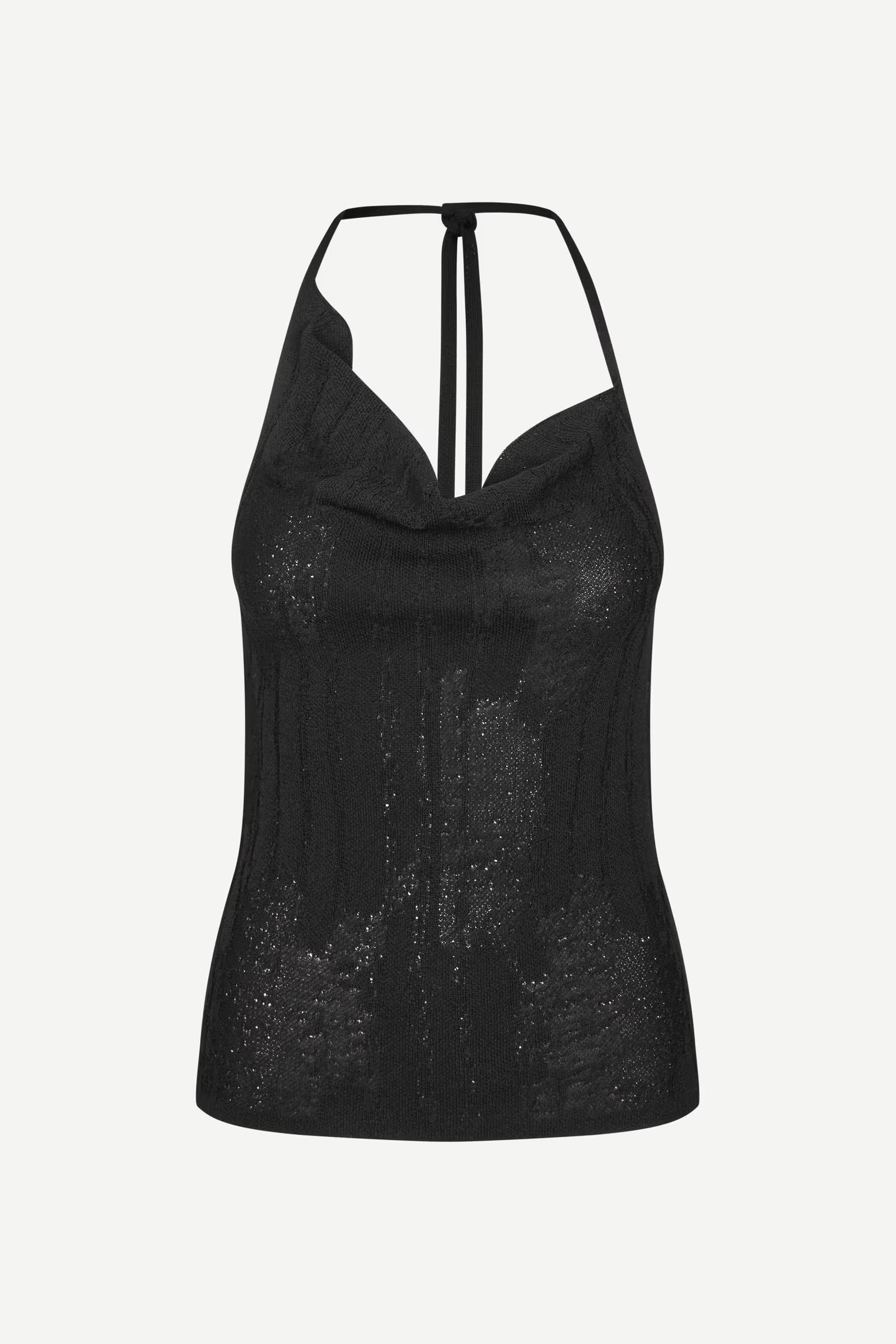 Gestricktes Neckholder-Top mit schmaler Passform und kurz geschnittener Silhouette. Bindeband zum Selbstbinden. Wasserfall-Ausschnitt. Hauptmaterial gefertigt aus einem Gemisch mit LENZING™ ECOVERO™ Viskose.
