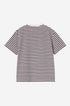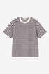 Das locker geschnittene Women's S/S Ezra T-Shirt besteht aus einem gestreiften, mittelschweren Baumwolljersey. Auf der Brust befindet sich eine gestickte Grafik.